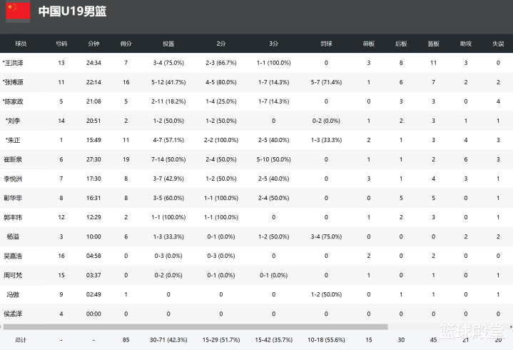 可惜陈家政彻底迷失,全场11中1,他在球场上就是时好时坏的水平,非常吃手感,幸好防守端的发挥不差。但这支国青的核心就是陈家政与张博源,导致李悦洲没什么出手,这是让人遗憾的。幸好李悦洲组织完成度不错,就是这个对抗还要再提升一下。